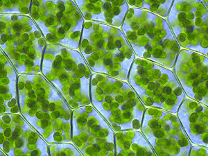![]() Chloroplasts from a leaf of the moss Plagiomnium affine. Picture: Kristian Peters. |