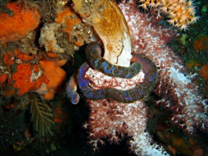 ![]() Many solenogasters (Epimenia babai) live and feed on corals. Source: Atwiki.jp. |