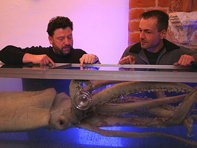 2005 was the first year, an Architeuthis giant squid could be seen in an exhibition in Germany. During a family Sunday in the German Oceanographic Museum the animal was uncovered in an exhibition tank several metres long and presented to the public. By the help of the squid expert Volker Miske from Greifswald, the German Oceanographic Museum in Stralsund on the Baltic Sea was able to acquire one animal from New Zealand.