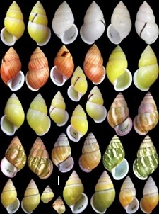 ![]() Amphidromus species from Thailand. (Source). The dash designates 10 mm. |