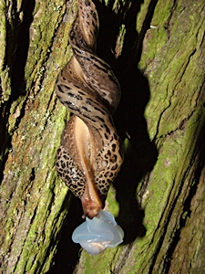 ![]() ![]() Mating of the leopard slug (Limax maximus). Pictures: T. Hiddessen. (Wikipedia). |