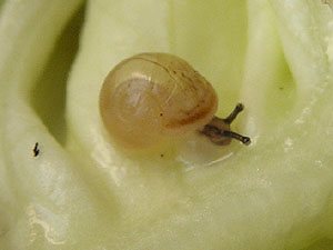 ![]() This freshly hatched Roman snail still has got a soft shell, in which lime has to be accumulated. [RN] |