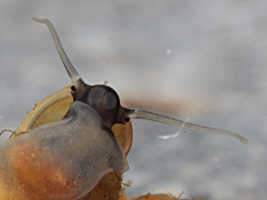 To return to the water snails, on one hand the pulmonate water snails should be mentioned. Those do not have a shell lid (pulmonate snails never do), but only two tentacles. As their eyes, as previously mentioned, are situated at the tentacles' base, those snail groups consequently are called Basommatophora, base-eye snails.