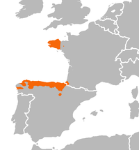 The species' distribution area covers parts of north-western France, northern Spain and northern Portugal. In Spain, Quimper snails have been found in altitudes of up to 1000 m MSL. The Quimper snail's distribution area is no continuous - the area in Brittany is separated spatially from the areas in Spain and Portugal. Such a distribution area is called disjunct.