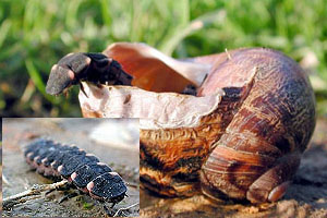 insect almost always also eat snails. Large snails, such as the Roman snail, can