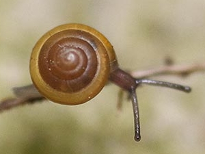 Description: The brown hive snail has a yellowish brown shell, which is quite lightly coloured on the upper side, looking silkily smooth on the underside. The shell has no visible shell navel (umbilicus) and the apertural whorl shows a slight blunt keel.