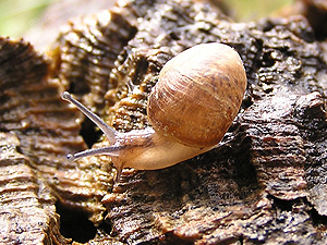 ![]() This freshly hatched Roman snail is only one day old. It still has a soft shell, which must be hardened with lime. [RN] |