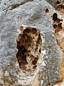 ![]() Limestone rock with tunnels drilled by Cornu mazzullii at Monte Cofano in Sicily. Picture: Tato Grasso, Source: Wikipedia. |