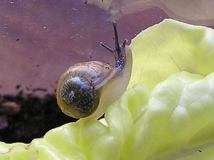 ![]() This juvenile Roman snail only has few whorls. Its shell is soft and translucent, so the internal organs can be seen. Photo: Robert Nordsieck. |