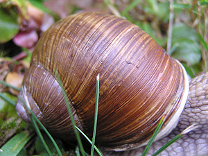 ![]() The shell of most Roman snails is coiled to the right: The shell mouth is placed on the right side of the snail's longitudinal axis. Photo: Robert Nordsieck. |