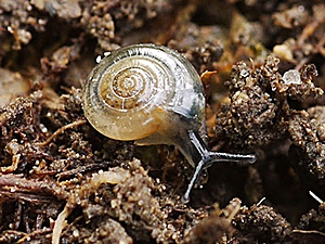 Its habitat Vitrea crystallina often shares with other crystal snail species, such as Vitrea diaphana and Vitrea contracta (picture).