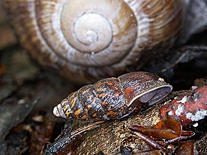 ![]() Dot snail (Punctum pygmaeum) compared to a mountain bulin snail (Ena montana), from Switzerland. Pictures: © Stefan Haller, (schneckenfoto.ch). |